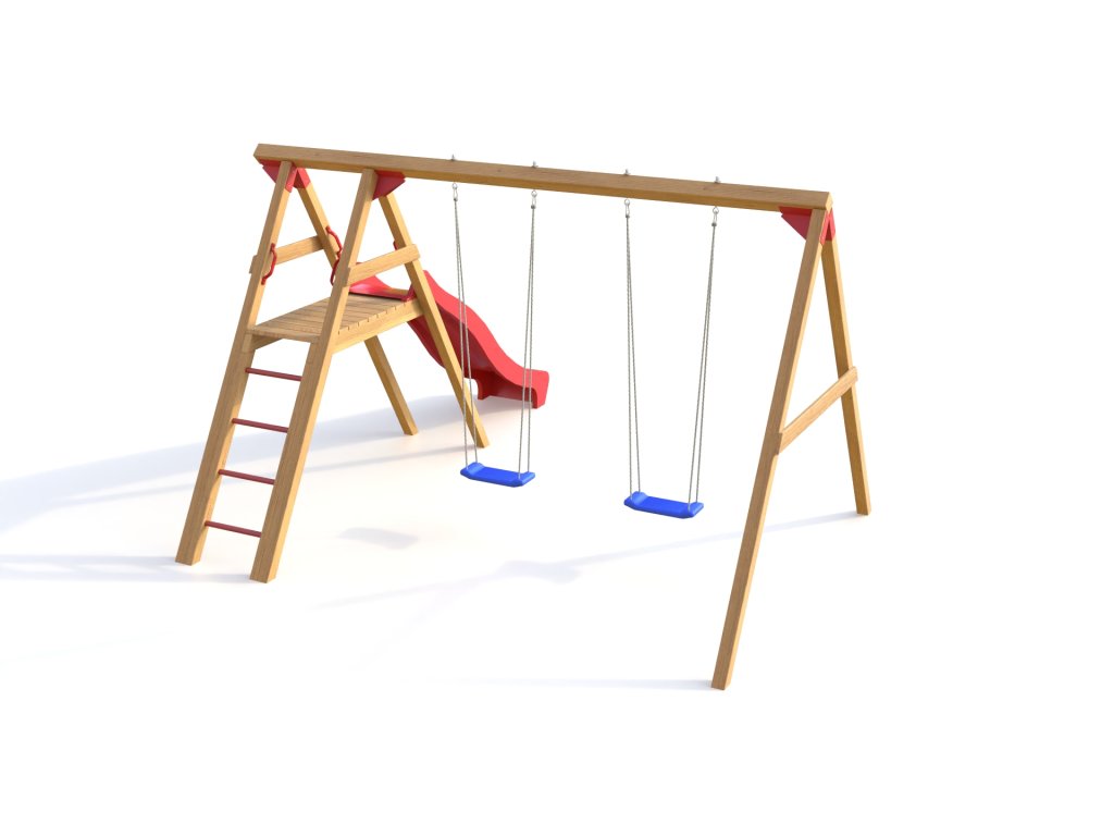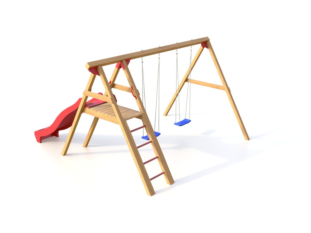 Dětské dřevěné hřiště Čipera je kvalitní české hřiště se skluzavkou a dvěma houpačkami.